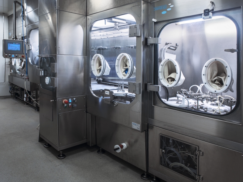 Розлив стерильных препаратов осуществляется в оборудовании изоляторного типа, в котором на протяжении всего производственного процесса поддерживаются специальные асептические условия (температура, влажность, скорость ламинарного потока, его направленность, перепады давлений, частицы).